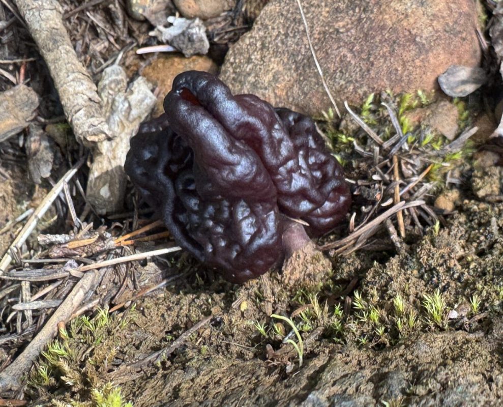 In the Buttle area, the snow line continues to rise, especially on south facing slopes, and both Buttle and Upper Campbell Lakes are very high from the run off. The early part if the Elk River trail is clear and dry, with little blowdown. We are waiting for reports back of the state of the trail from the Butterwort camp onwards. It is too early for srping blooms, but there are some “snow-bank” fungi to be found such as Gyromitra esculenta or False Morel ( which is not, as its species name suggests, edible, unlike the prized Morchella esculenta, the common morel).