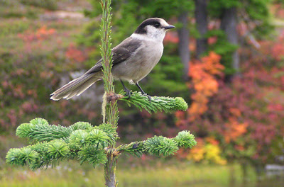 Around Croteau Lake, the gray jays must have learned over many generations to visit hikers & campers.