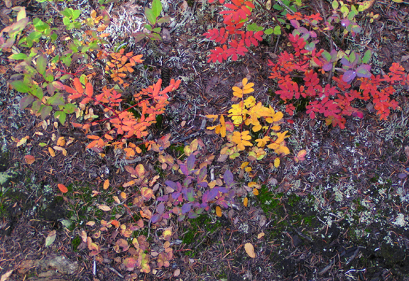 At this time of year the huckleberry, blueberry & mountain ash leaves appear in every colour of the rainbow.