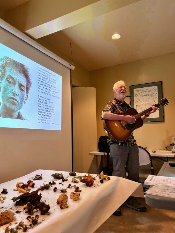 The highlight on the Saturday was Andy MacKinnon inviting all to sing along to his variation on the well-known Bob Dylan song, which he entitled “The names they are a-changin’” – to illustrate the fact that many of the names which were given to our BC Fungi on the basis of European specimens are now, through DNA analysis, shown to be quite different genera and species.